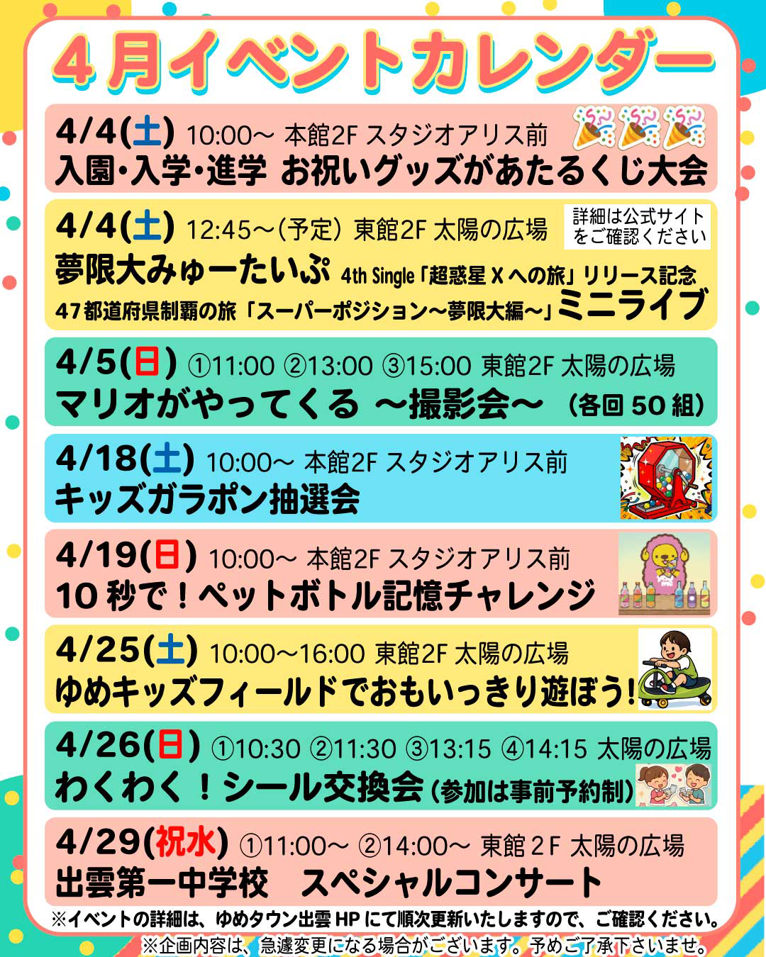 4月のイベント情報を公開!ゆめタウン出雲でイベントに参加して楽しもう!