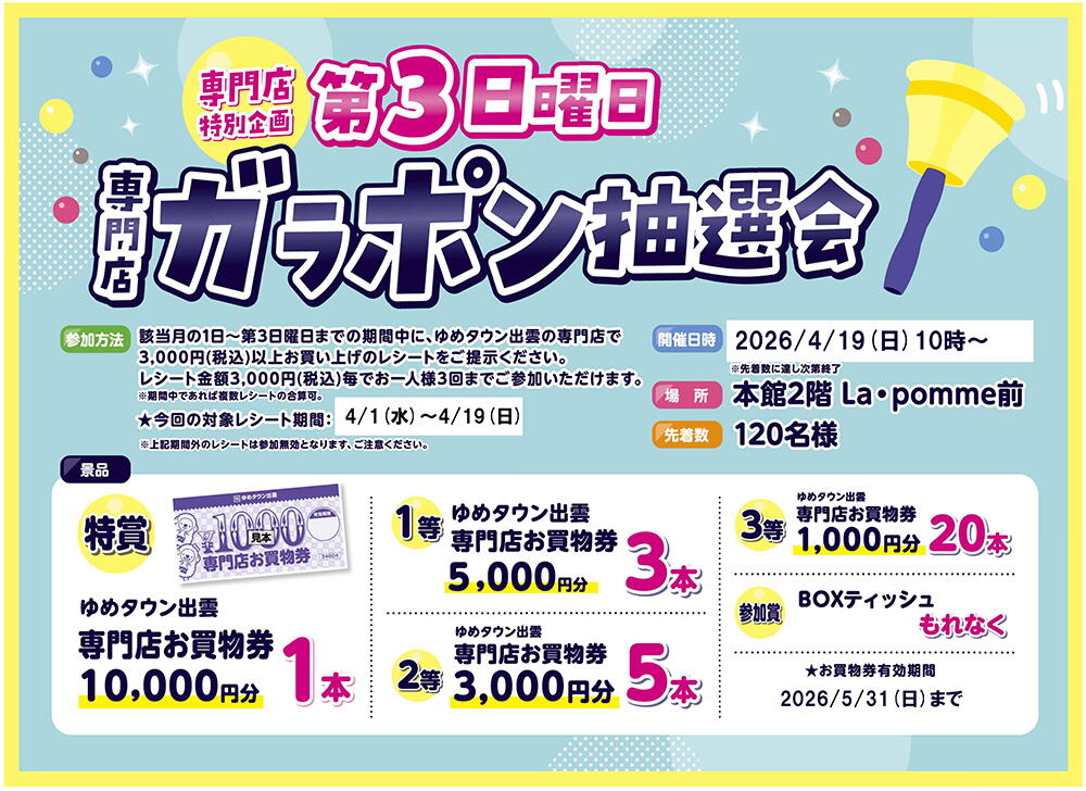 専門店特別企画 第3日曜日 専門店ガラポン抽選会
