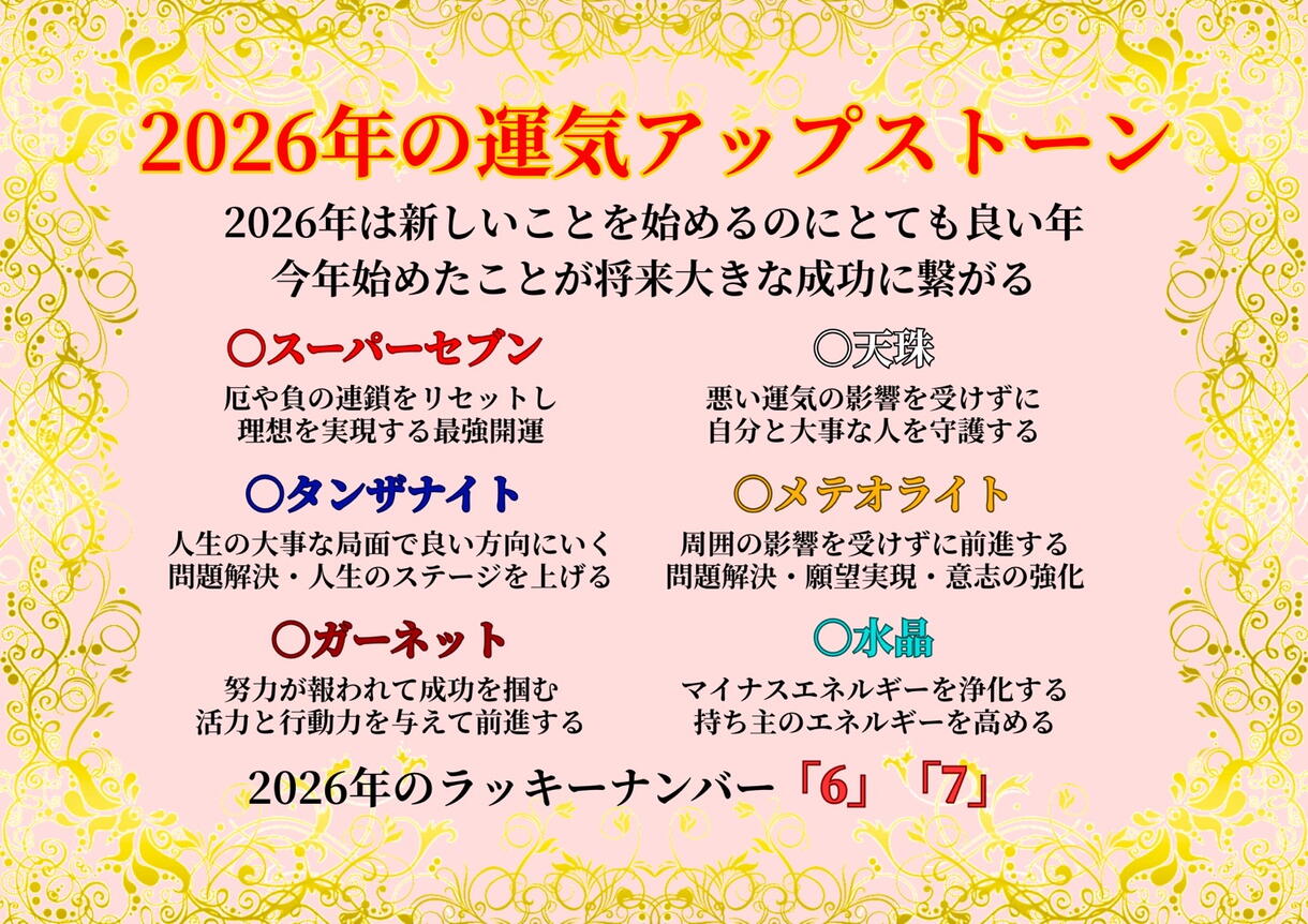 この6種類が、新しいことを始めるのにとても良いとされる、2026年の運気アップストーンです^^