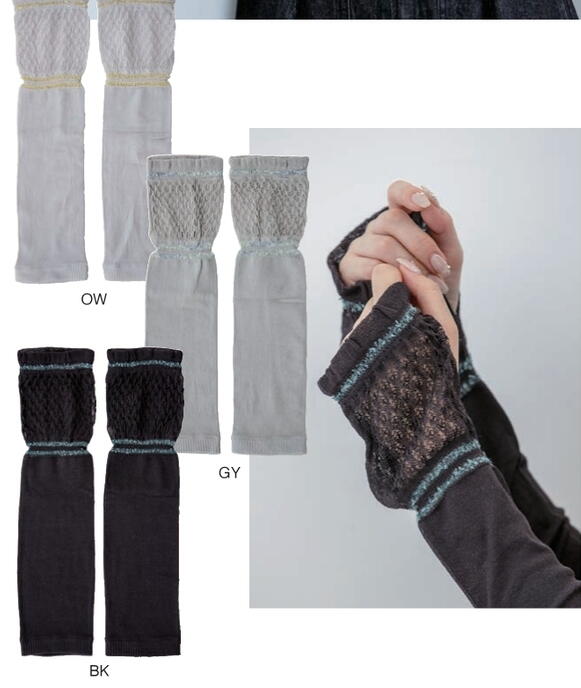 ブレスレットみたいな異素材ヤーンがポイントのアームカバー