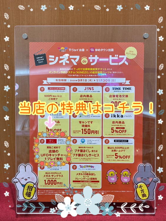 お客様から大好評の無料ジュエリークリーニング、リピート時にご利用いただける増額クーポン、店舗でのドリンクサービスなど、ご来店の感謝を込めてたくさんの無料サービスをご用意しております。キャンペーンで景品プレゼントがあることも。