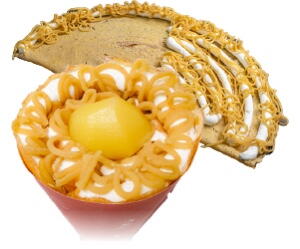 もっちり香ばしい黄金色の生地はこだわりぬいた素材と製法でつくるボンズクレープ自慢のオリジナルクレープ生地です