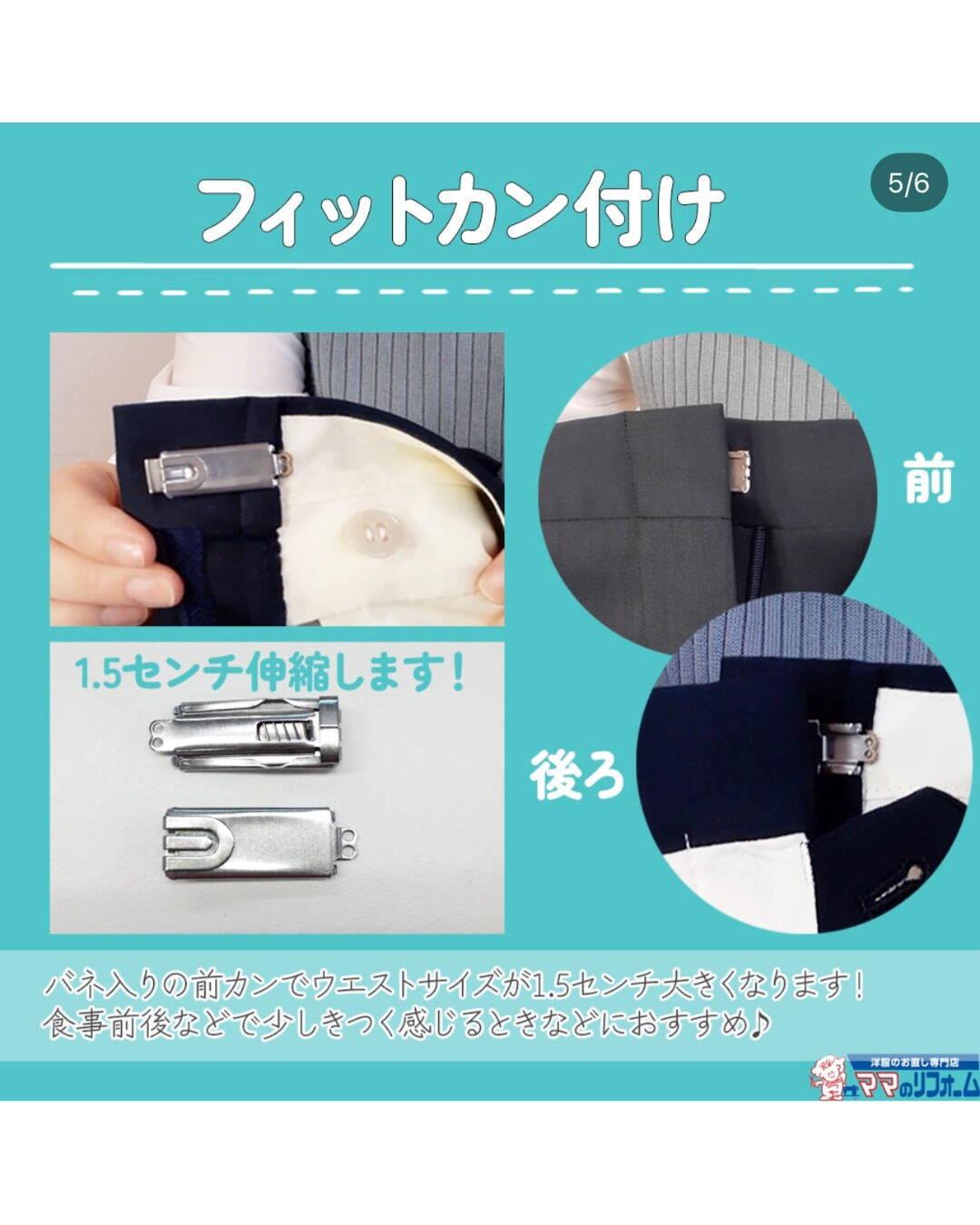 1.5センチほど伸縮する金具で、快適なウエストサイズに!