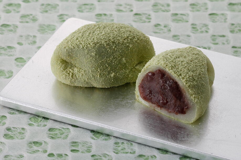 口福堂の大人気つぶあんをしっとり柔らかなお餅で包み、鶯色のきな粉をまぶしました。