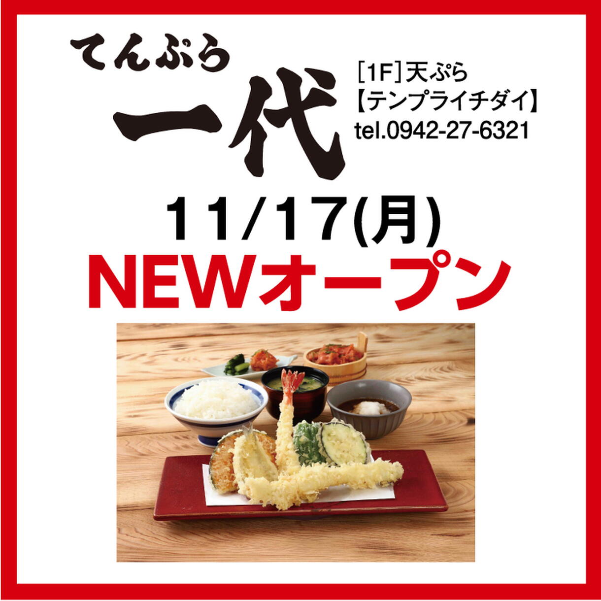 11/17(月) 天ぷら一代 NEWオープン