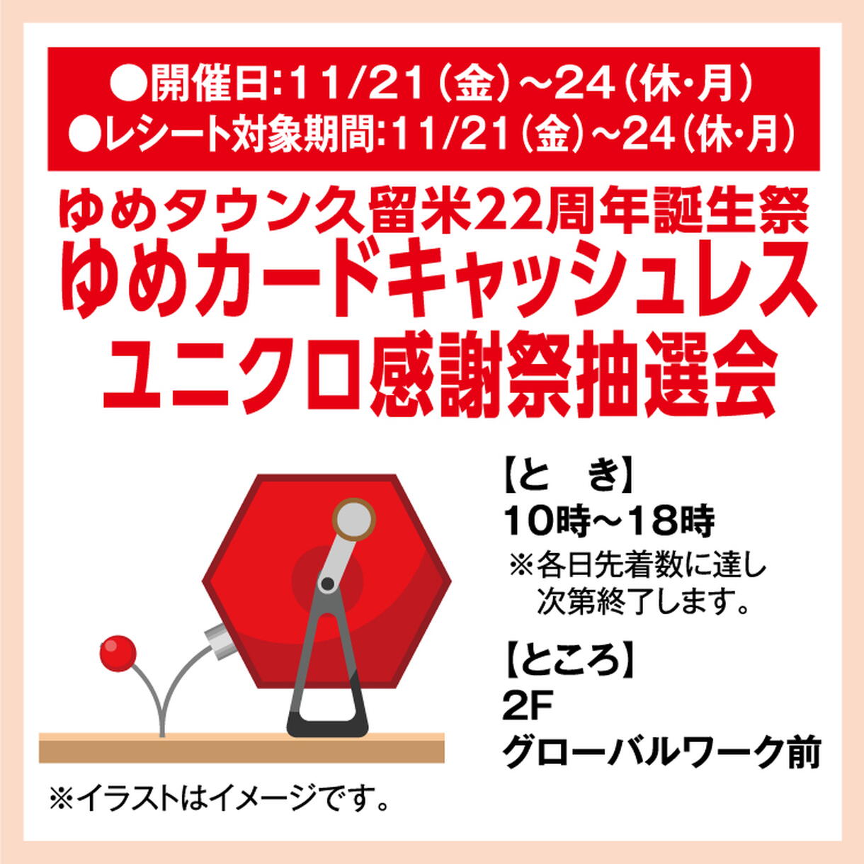 ゆめタウン久留米22周年誕生祭 ゆめカードキャッシュレス ユニクロ感謝祭抽選会