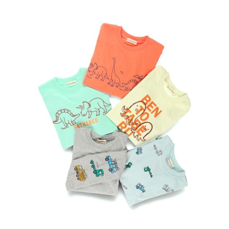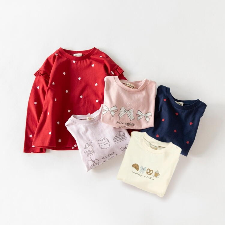 かわいい総柄2カラーの肩フリル付きの長袖Tシャツ