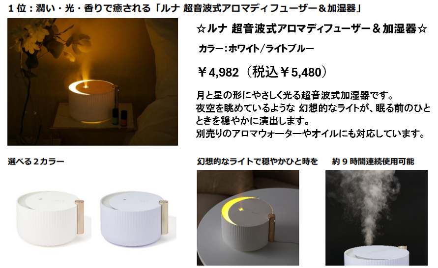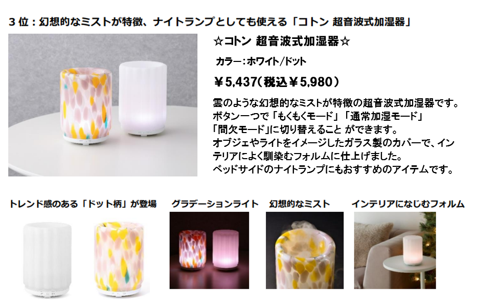 今回のランキングはインテリアとしても楽しめて、小型ながらしっかり加湿力のあるアイテムがランクインしました☆