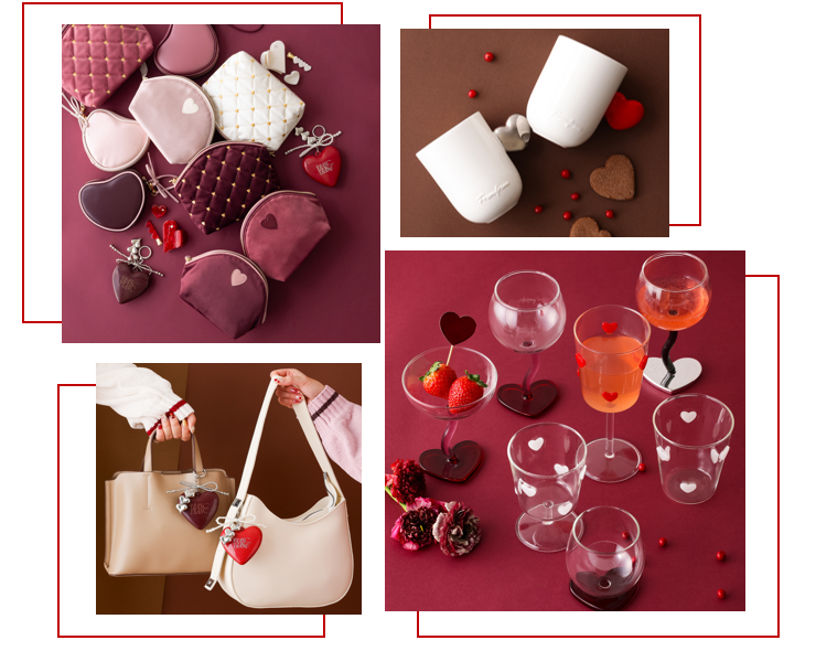 友人とお揃いで楽しんだり、自分へのご褒美として選んだり、バレンタインパーティーで使ったりと、多様なシーンでお楽しみいただけるよう、ハート型のポーチや食器など、バレンタインならではのときめきを感じられる新作アイテムを取り揃えました♡