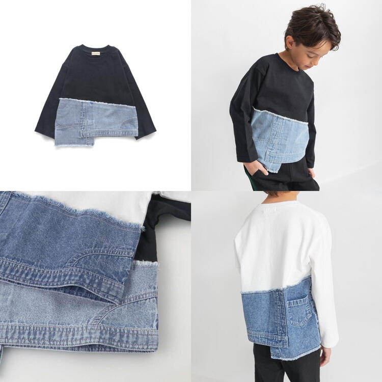 【デニム×コットン】異素材レイヤード長袖Tシャツ