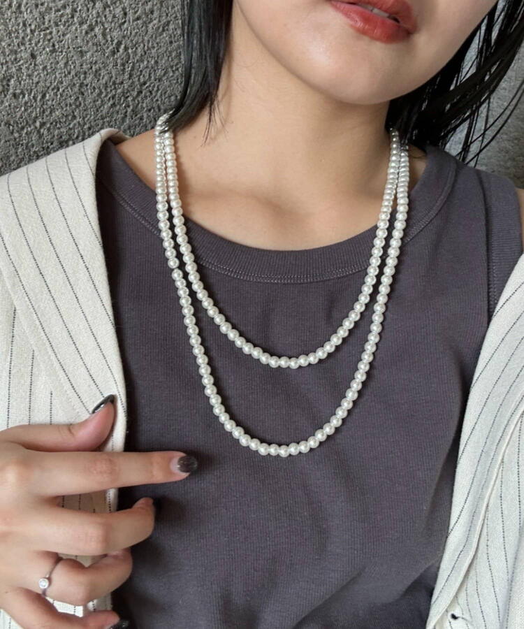 付け方のアレンジの効くシンプルな1連パールのネックレス。