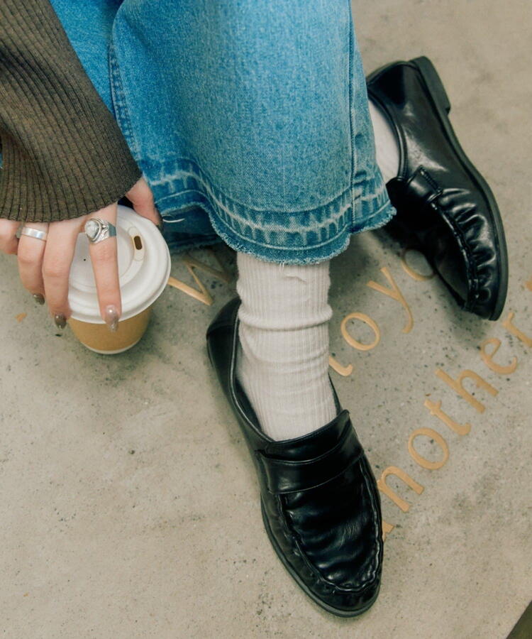 フラットシューズなのでボトムに迷わず、パンツはもちろんスカートにも合わせやすいです!
