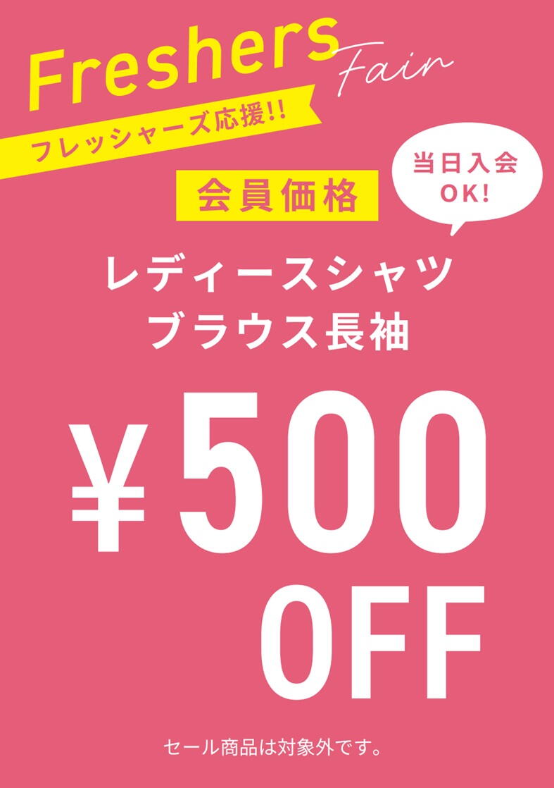 \レディース長袖アイテムが表示価格よりレジにて500円OFF/