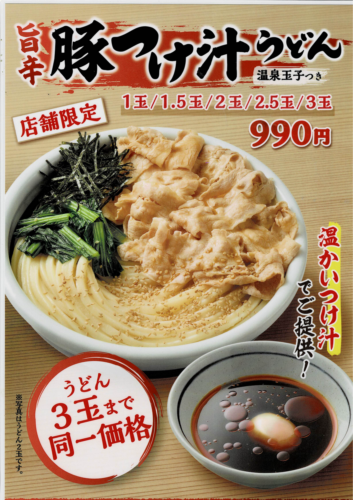 昨年大好評をいただいた旨辛豚つけ汁うどんが今年も帰って来ました。