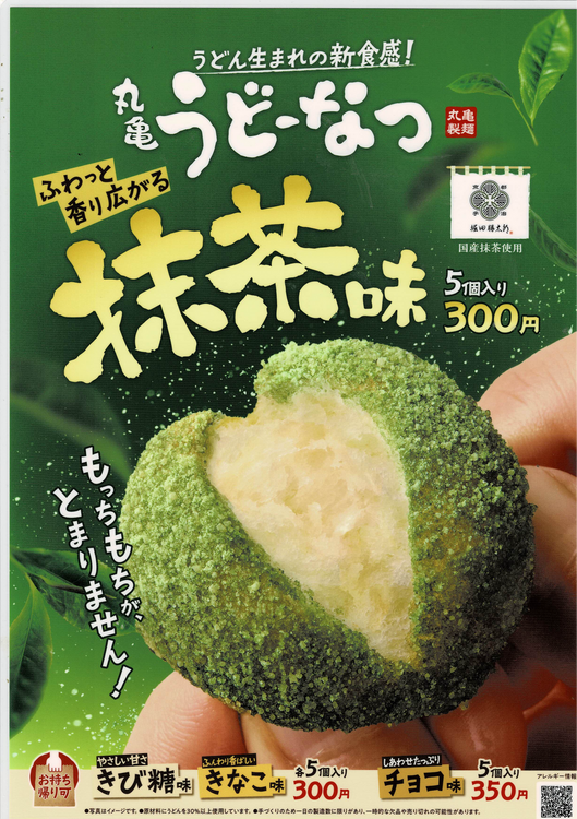 うどん、天ぷら、おむすび、いなり、うどん弁当、うどーなつ