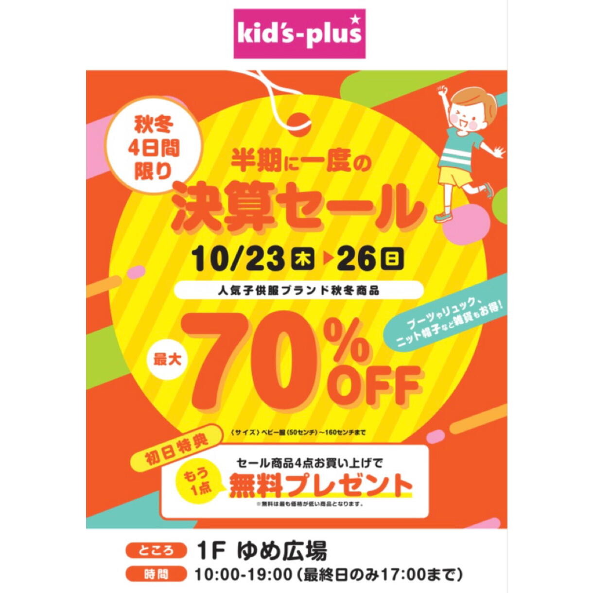 10/23(木)〜26(日)ゆめ広場 キッズプラス決算セールのお知らせ