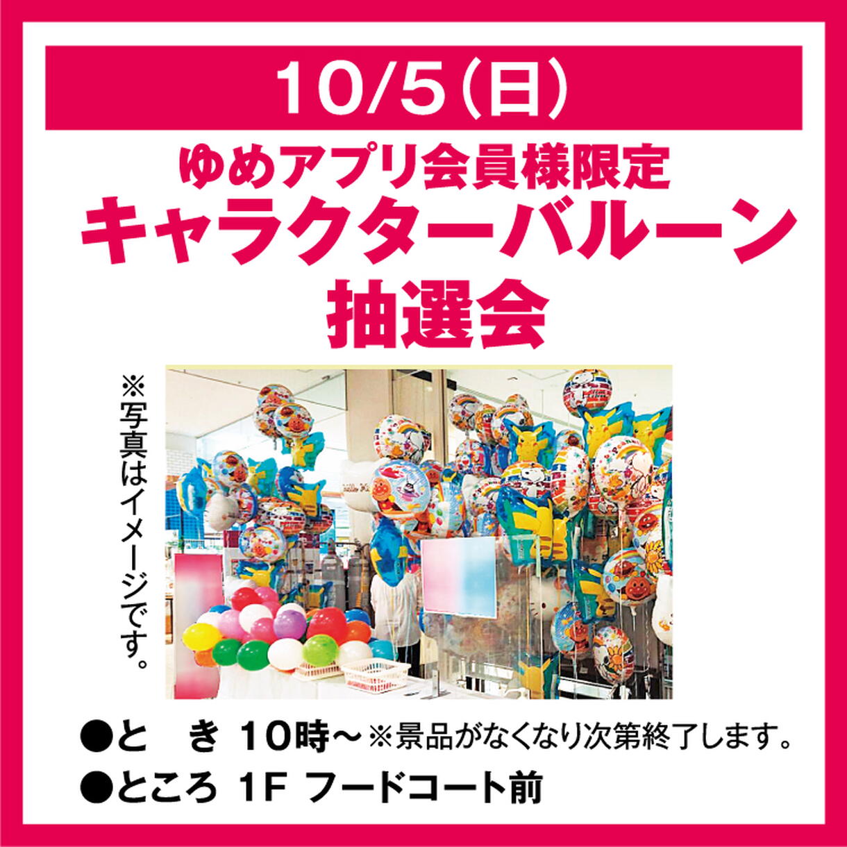 ゆめアプリ会員様限定 キャラクターバルーン抽選会