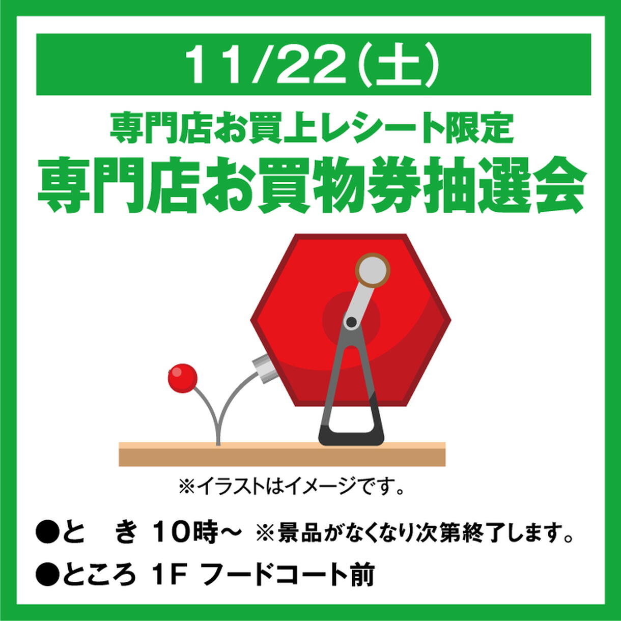 専門店でのお買物のあとのお楽しみ!専門店お買物券が当たる抽選会開催!