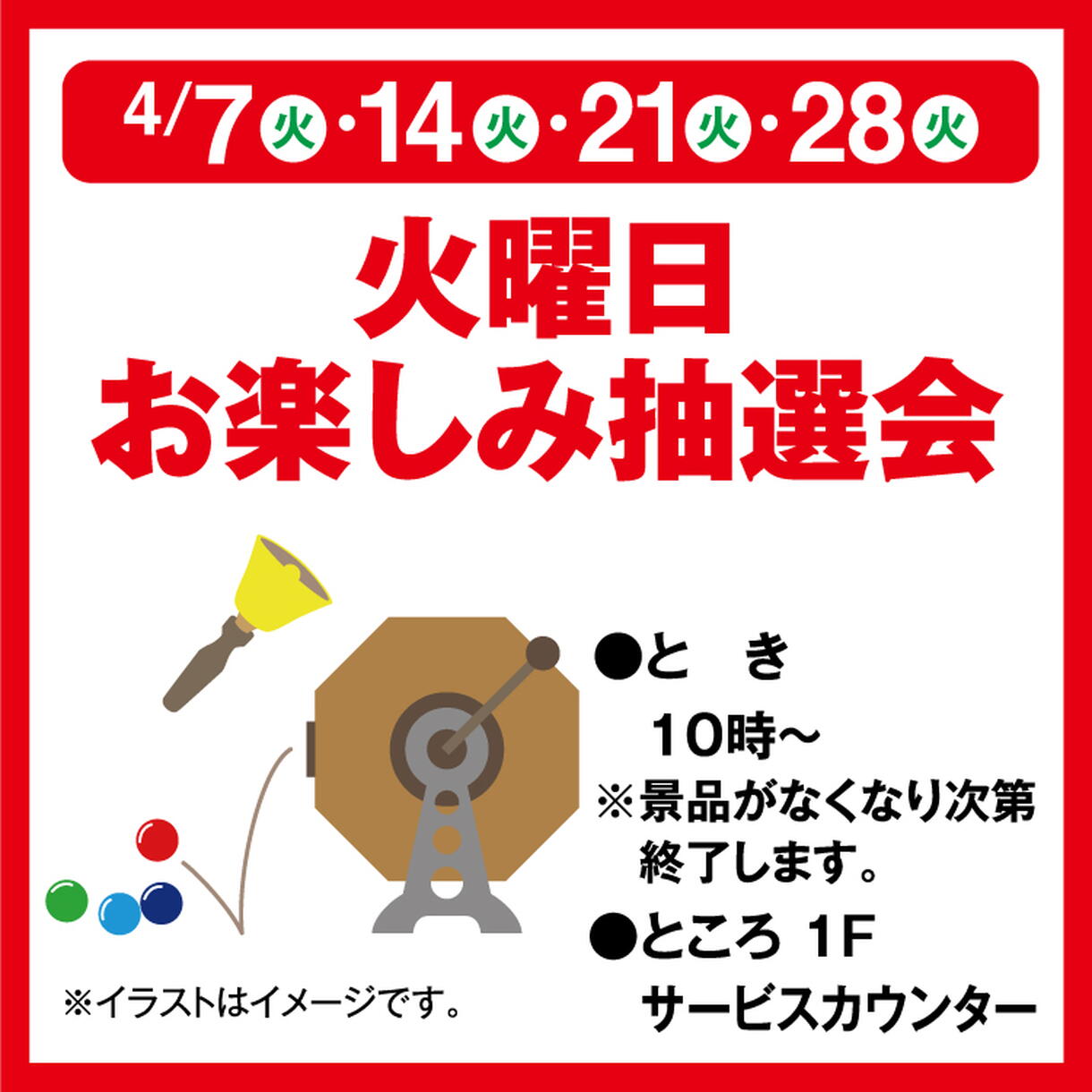 ●期間 4/7(火)・14(火)・21(火)・28(火)