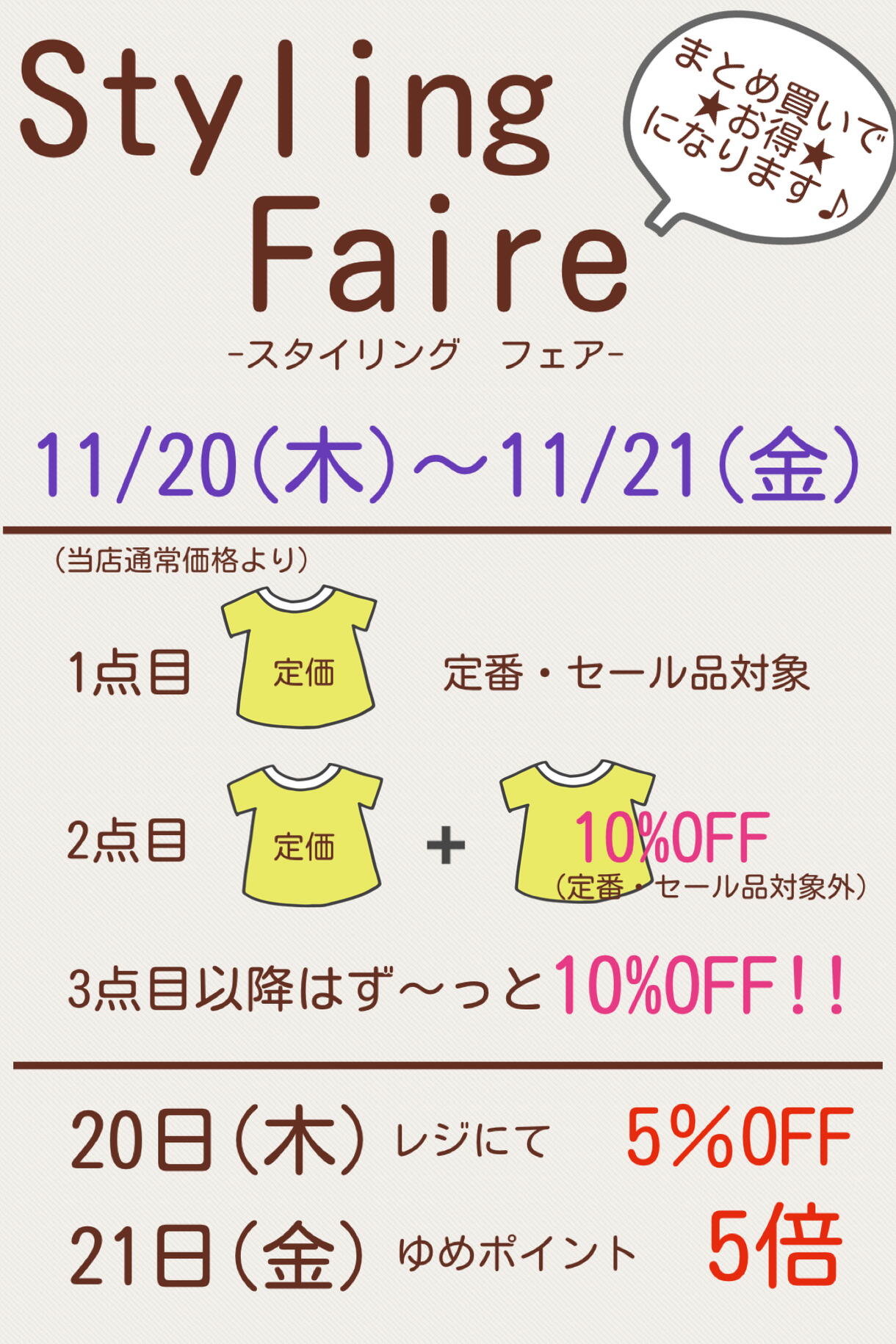 そんな声にお応えして2点目(当店通常価格)より10%OFFになるスタイリングフェアを開催いたします。