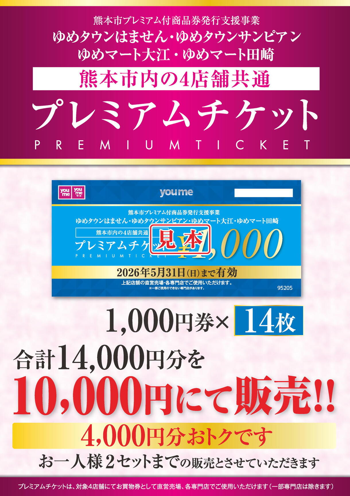 ゆめマート大江 イベント/キャンペーン 熊本市内4店舗共通『プレミアムチケット』ご利用可能店舗のご案内