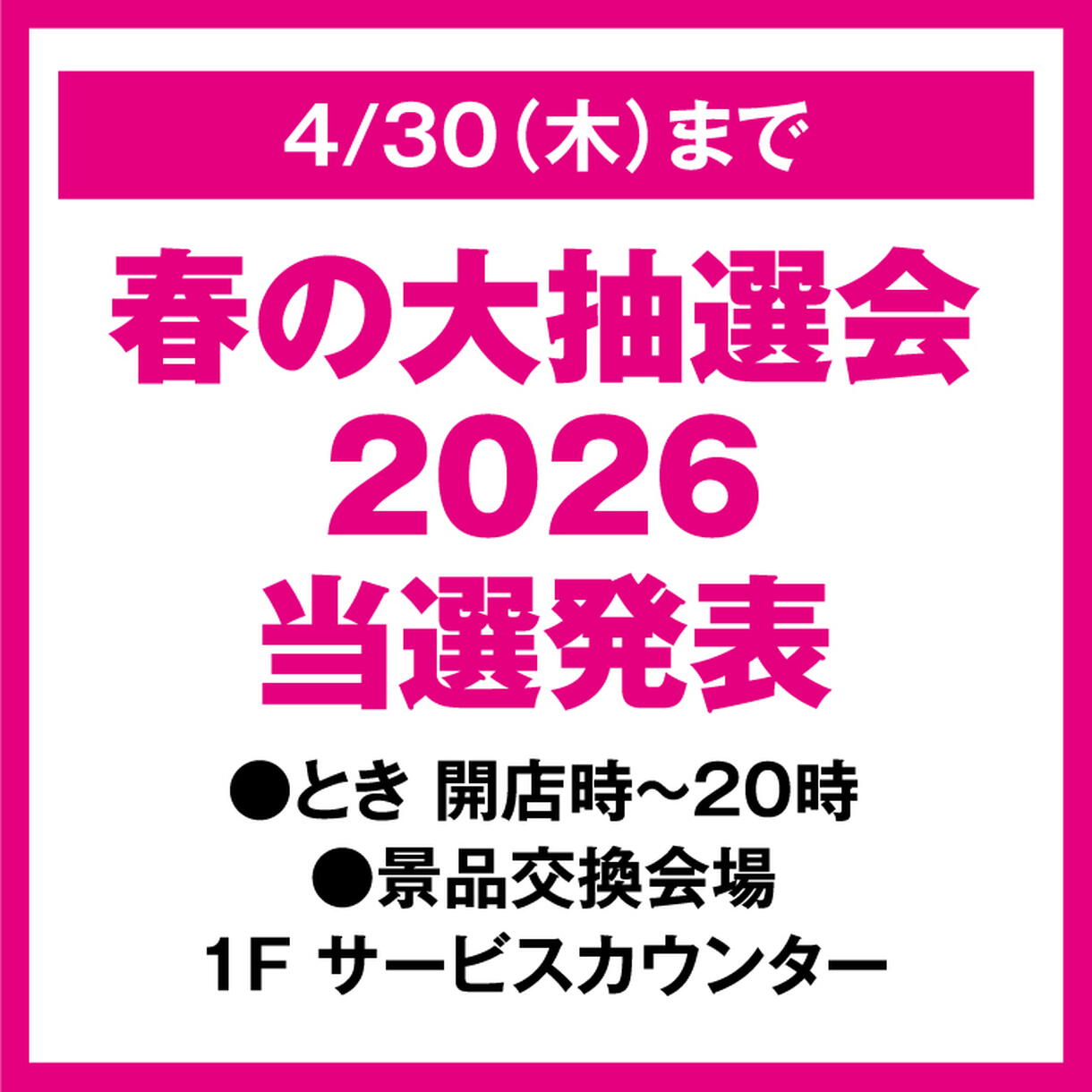※必ず期間中にご来店の上、交換をお願いします。期日を経過しますと当選は無効となります。