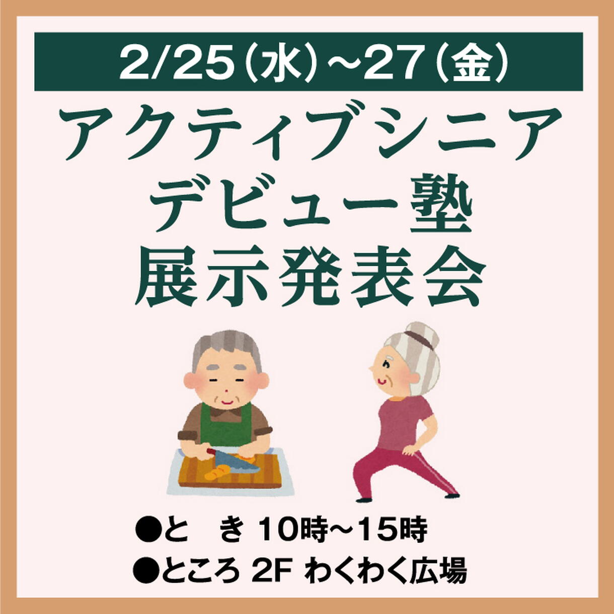 アクティブシニアデビュー塾 展示発表会を開催します。