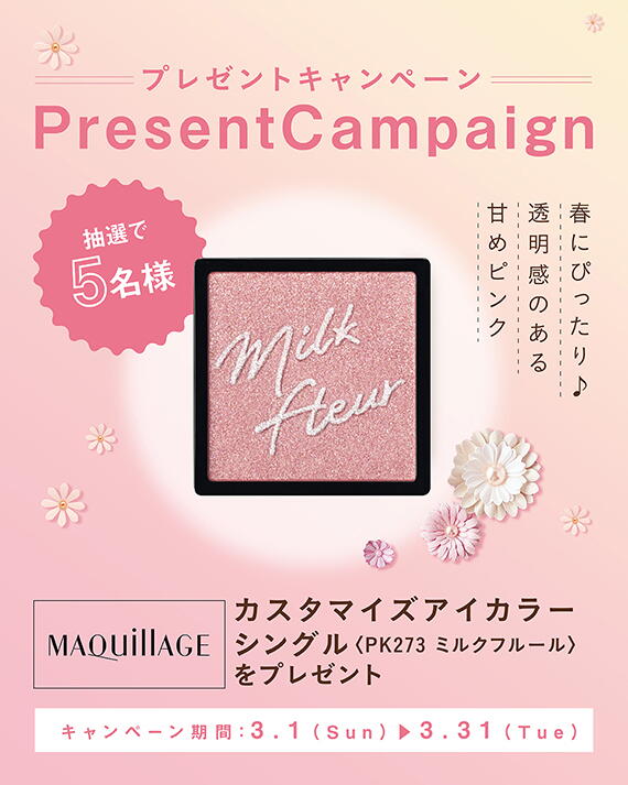 「マキアージュ カスタマイズアイカラー シングル〈PK273ミルクフルール〉」を抽選で5名様にプレゼントいたします。
