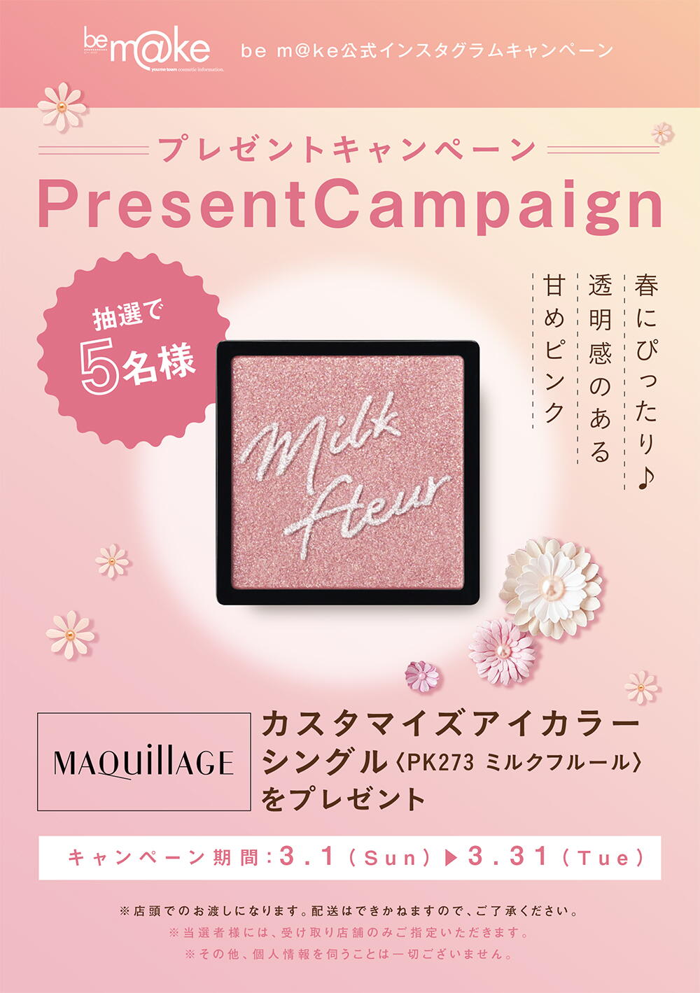 3/1(日)~3/31(火) be m@ke公式インスタグラムキャンペーン企画『Present Campaign』