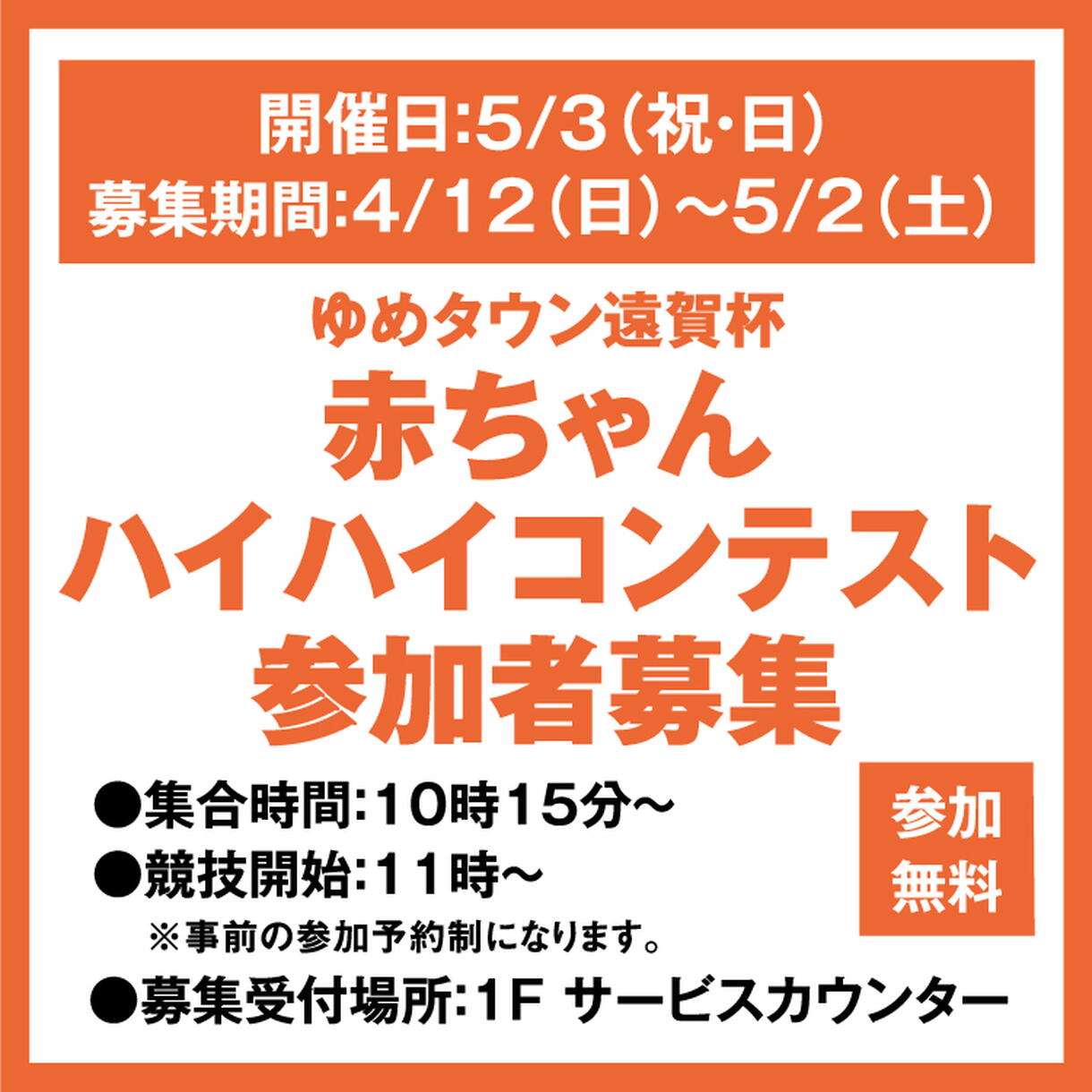 ゆめタウン遠賀杯 赤ちゃんハイハイコンテスト 参加者募集