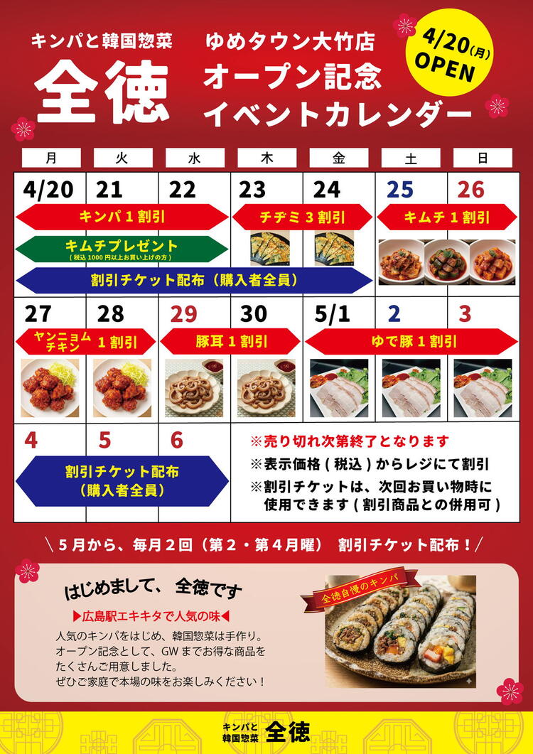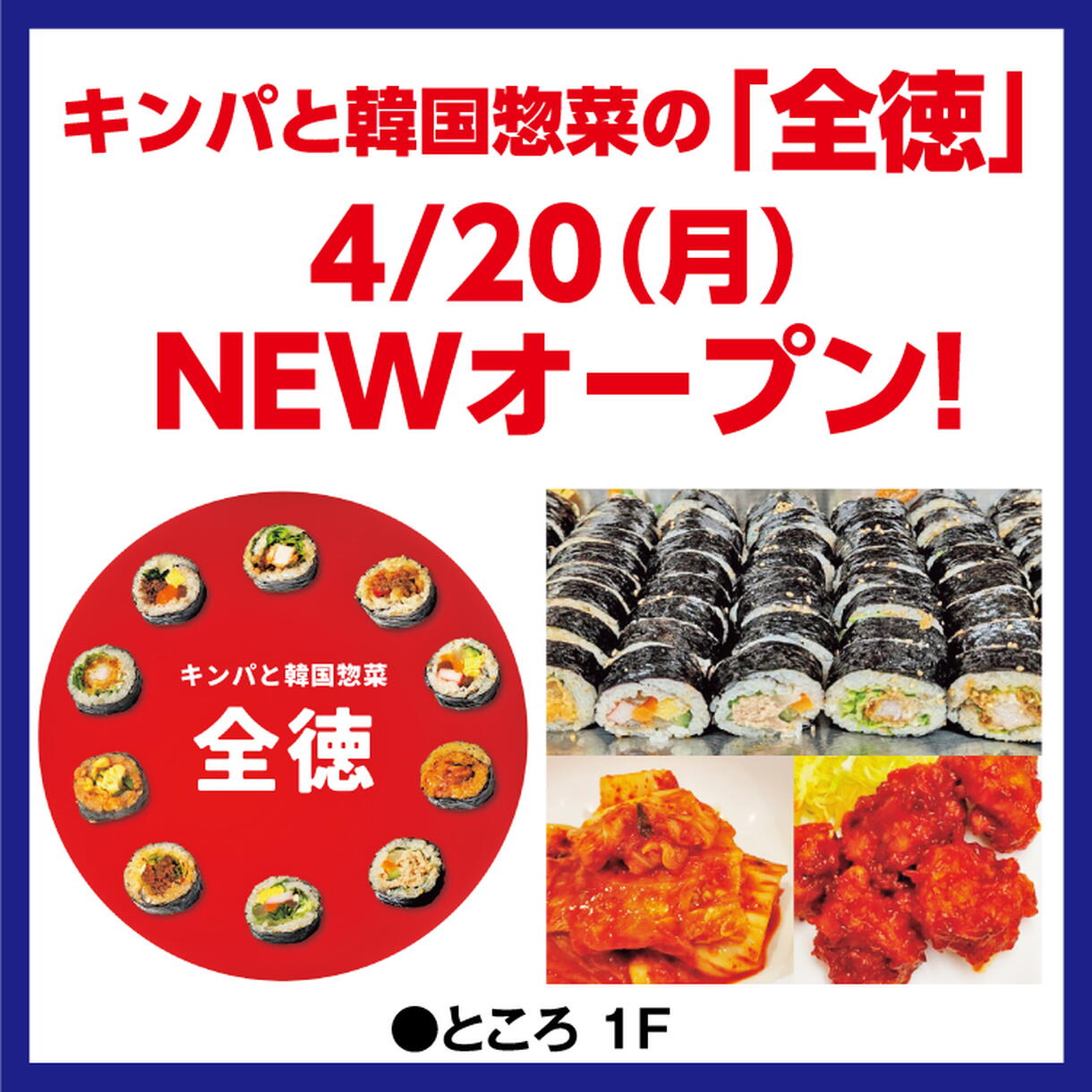 キンパと韓国惣菜「全徳」 4/20(月)NEWオープン!