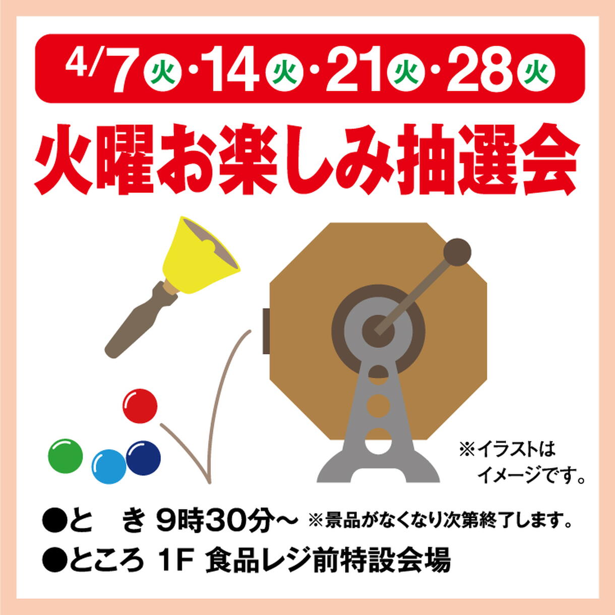 ●期間 4/7(火)・14(火)・21(火)・28(火)