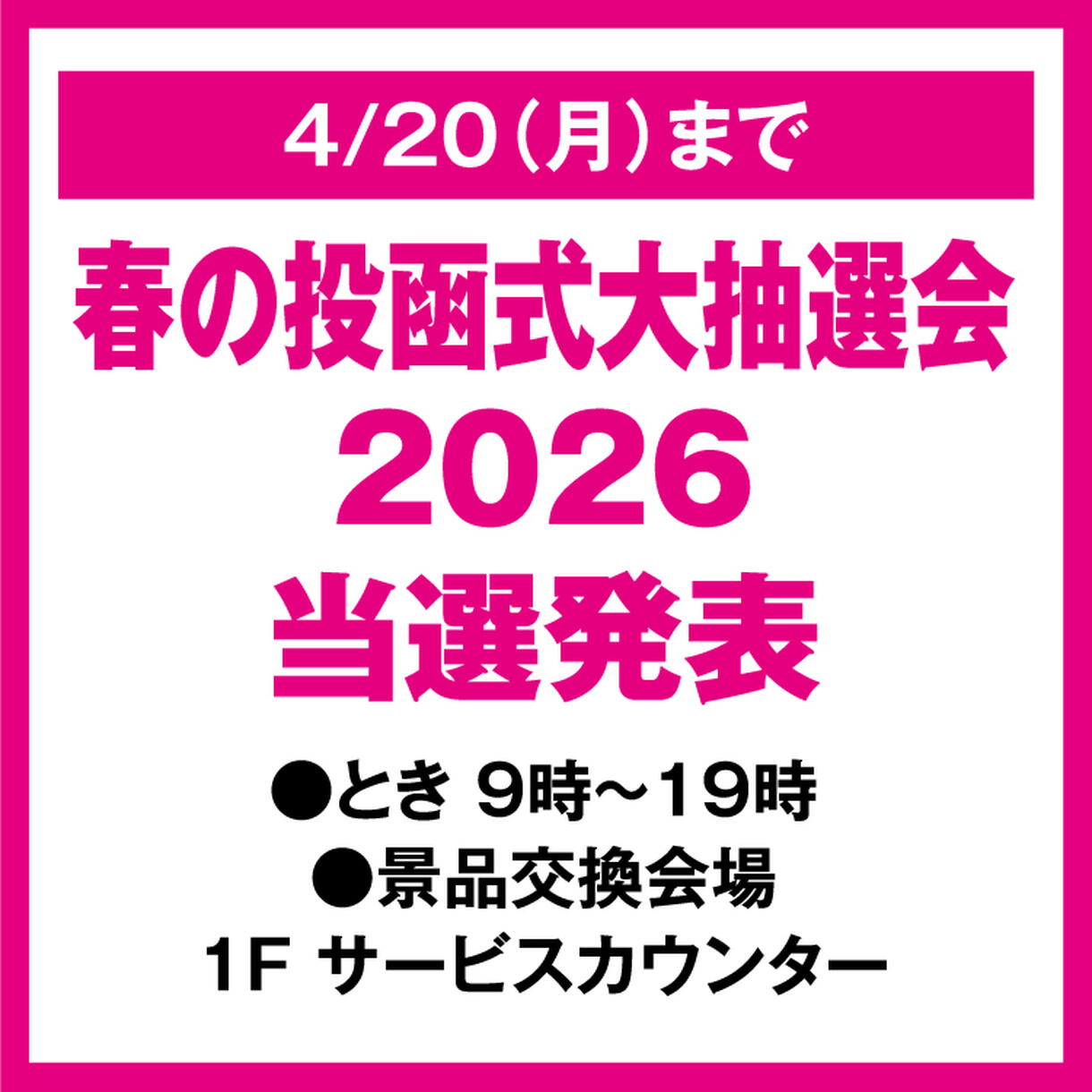 ※必ず期間中にご来店の上、交換をお願いします。期日を経過しますと当選は無効となります。
