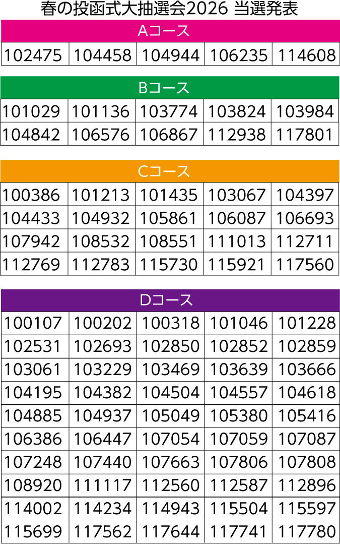 当選のお客様は、当たりの応募用紙の控えを会場までご持参ください。