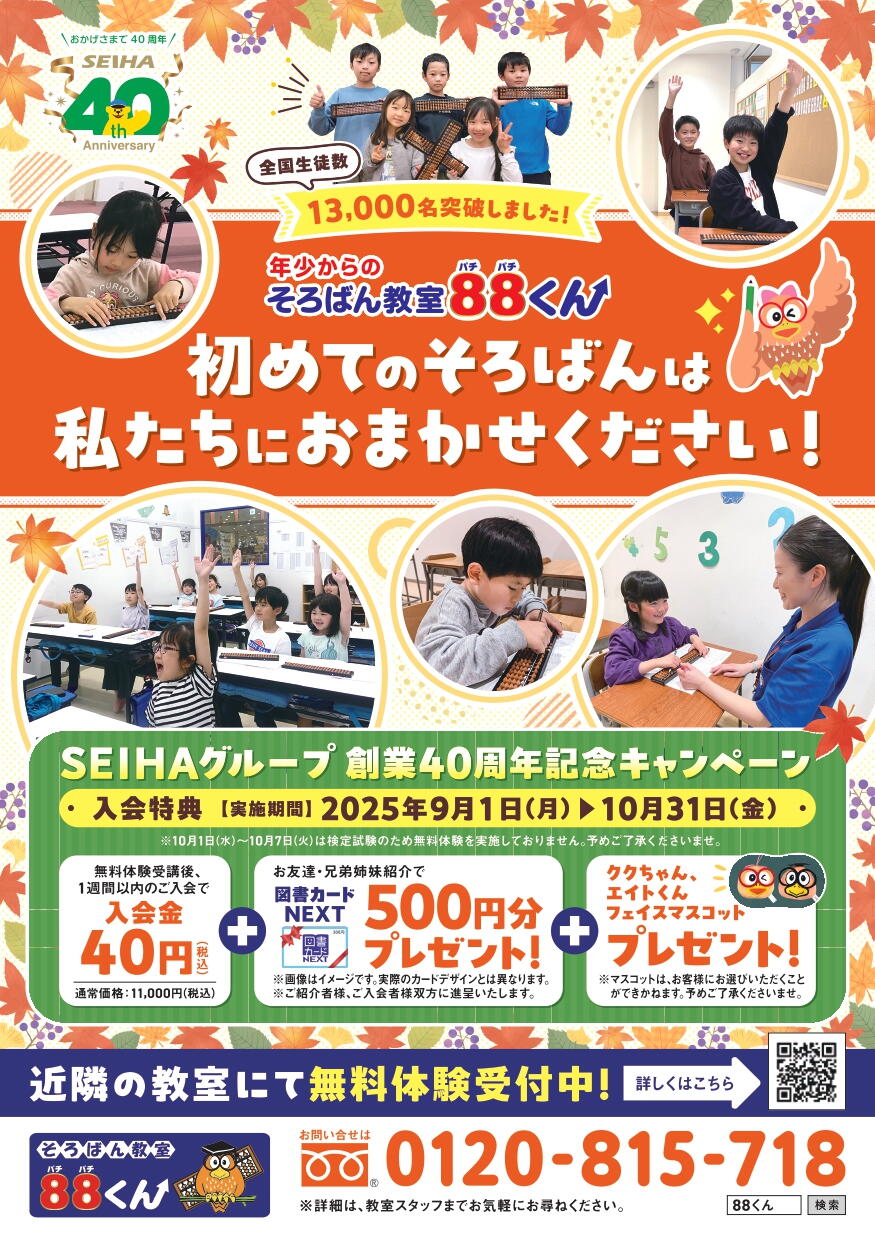 ※10月1日~7日までは検定週間のため、実施しておりません。