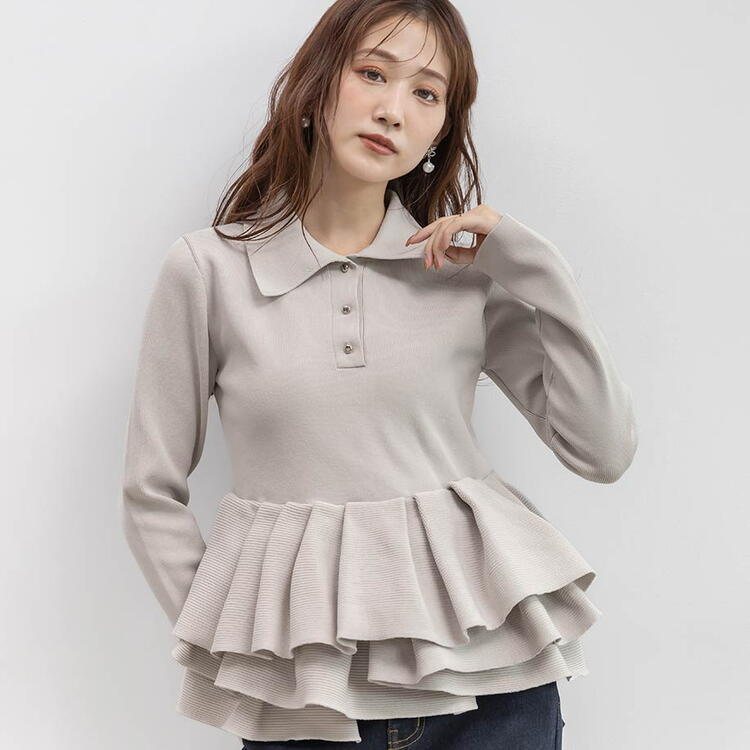 【RANDA(ランダ)ランダムぺプラムスポンディッシュニット】