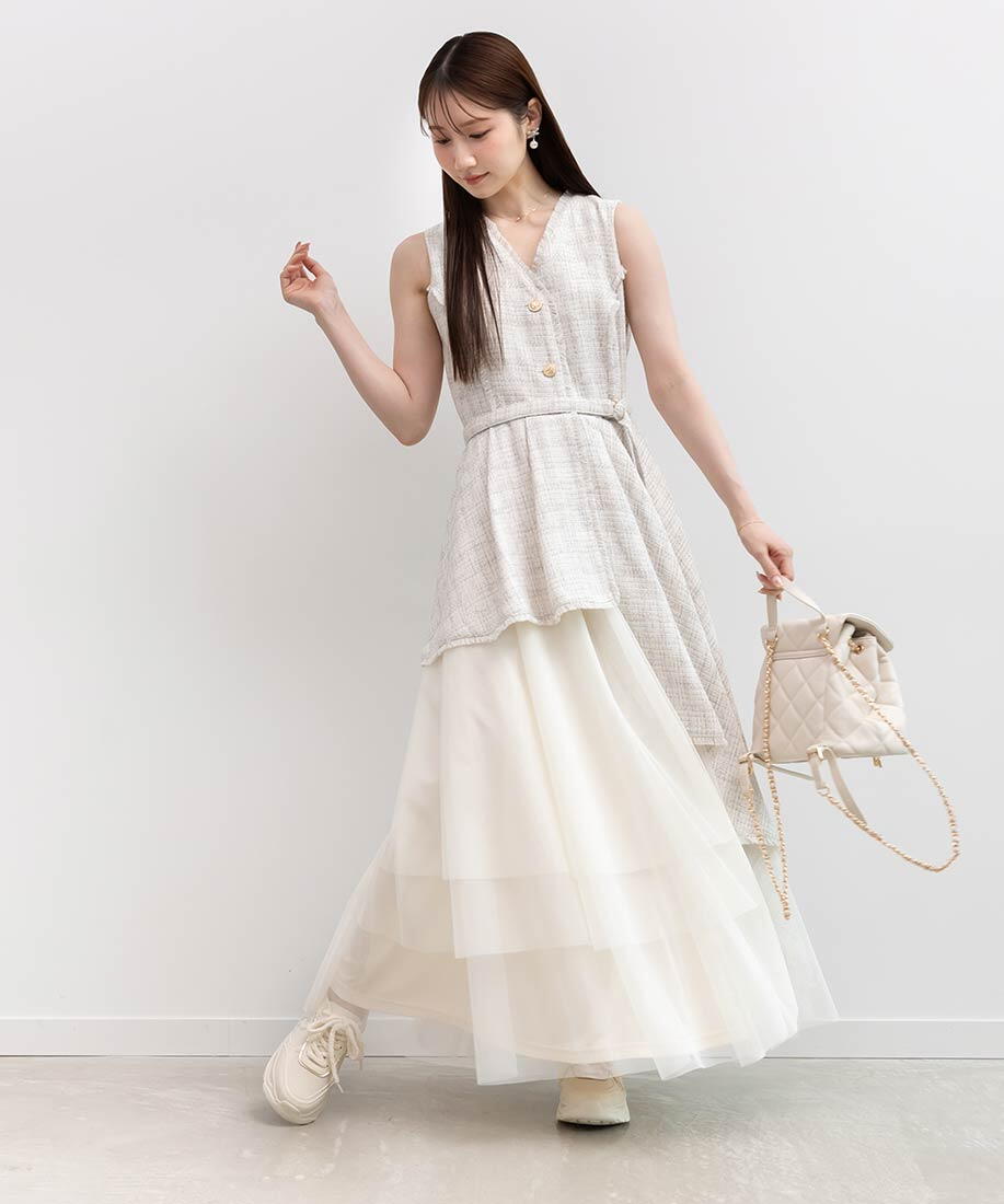 ・チュールスカートのティアードデザインでさらにフェミニンさアップ