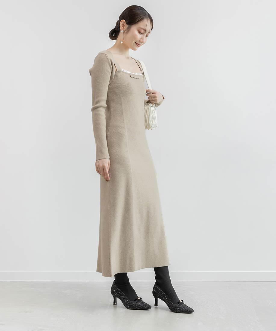 ボレロセットリブニットワンピース