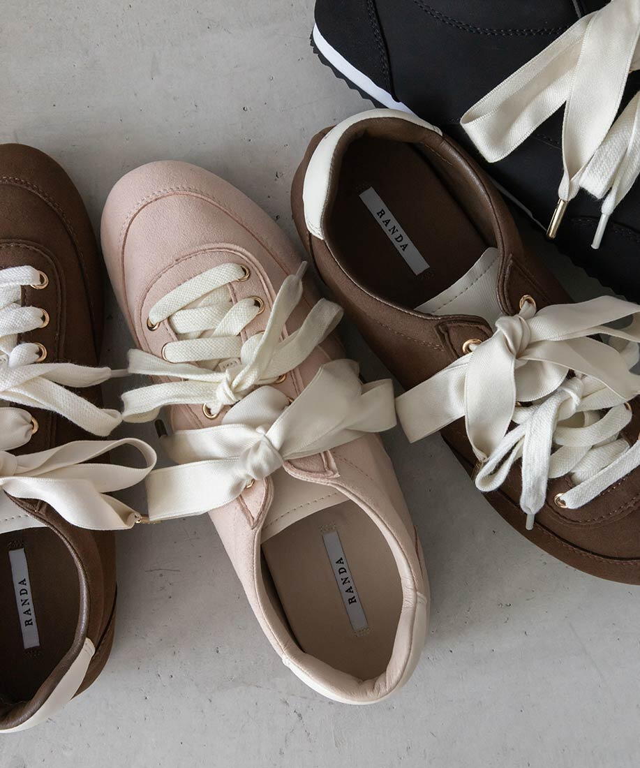 ・ダブルリボンは甘さを控えたマットなサテンとシンプルなシューレースを採用