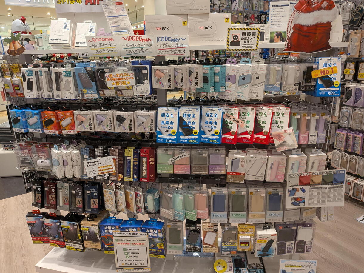 そんなときに役立つモバイルバッテリーを当店では数多く販売しております!