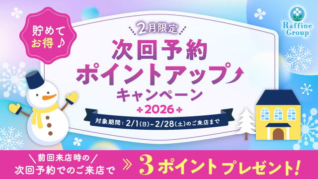 2026年2月1日(日)~2月28日(土)までの期間、次回予約特典ポイントアップキャンペーンを実施いたします。
