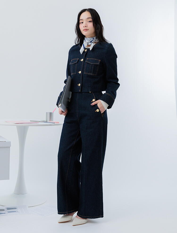 クロップド丈でバランスアップを叶える、モダンデニムジャケット。
