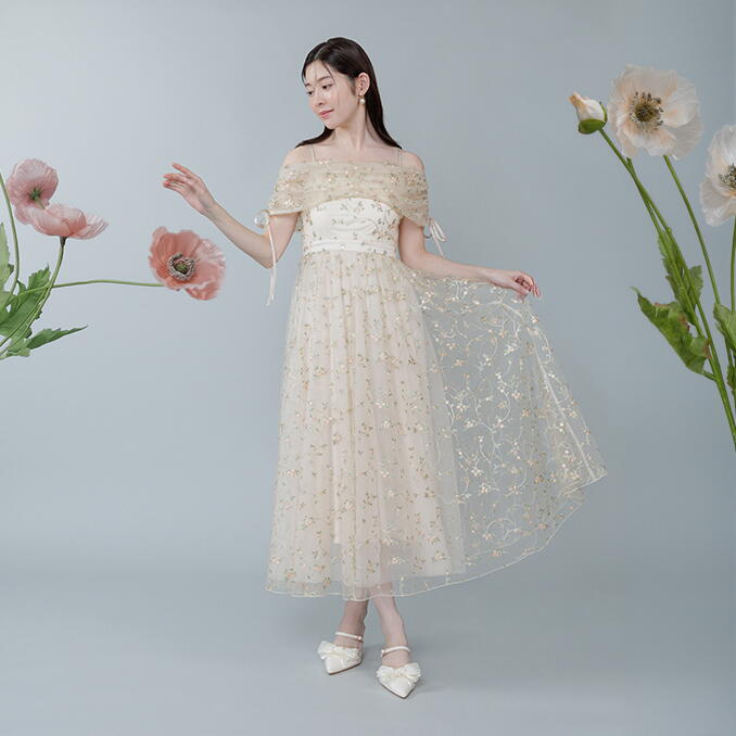 【Flower Collection】フラワー刺繍オフショルキャミワンピース