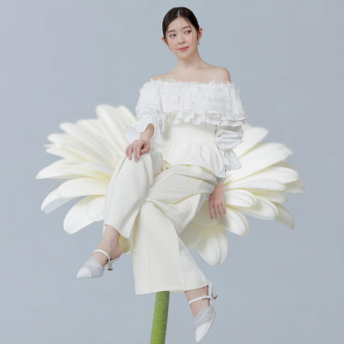 3Dフラワーチュールとフリルデザインが奏でる、ドラマティックなブラウス。