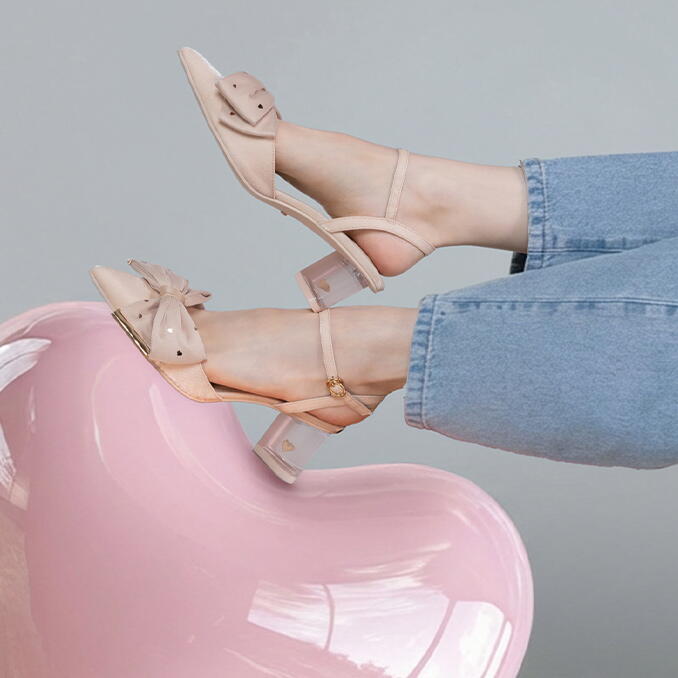 繊細なハートスパンコールを施したリボンが印象的なバックストラップパンプス。