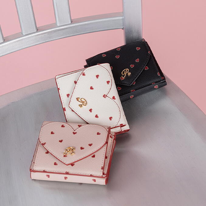 ハートカットデザインとオリジナルのハート柄が愛らしいミニウォレット。