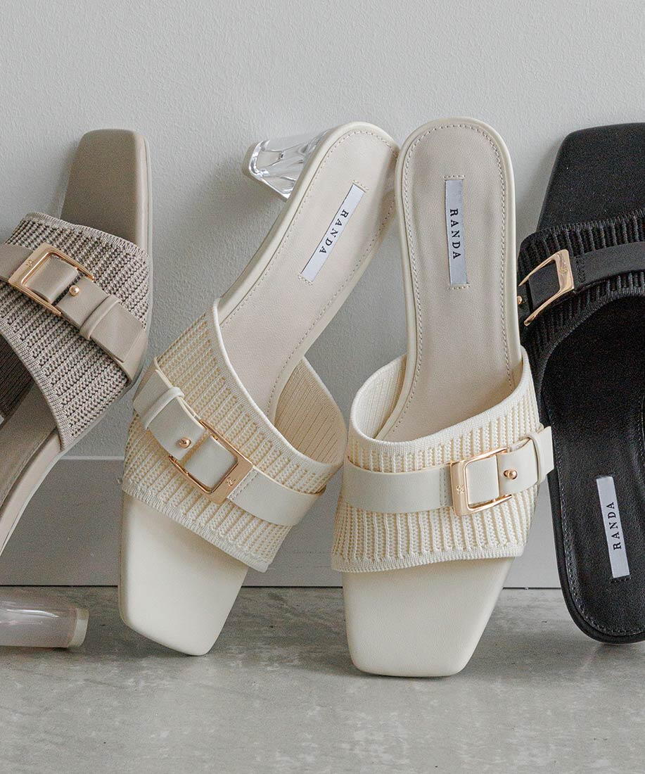 【SUSTAINABLE】ベルトデザインニットミュールサンダル