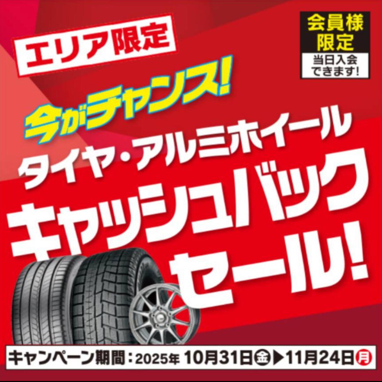 タイヤ・アルミホイールキャッシュバックセール開催中!