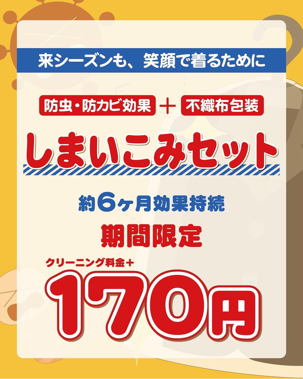 ただいま小柴クリーニンググループでは「期間限定!しまい込みセットセール」を実施中!👔