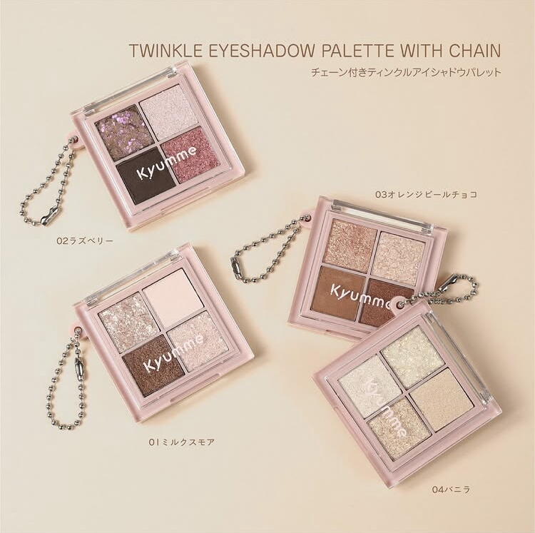 チェーン付きのグラスティントリップグロスやティンクルアイシャドウパレットはバッグにつけたり持ち運びに便利✨